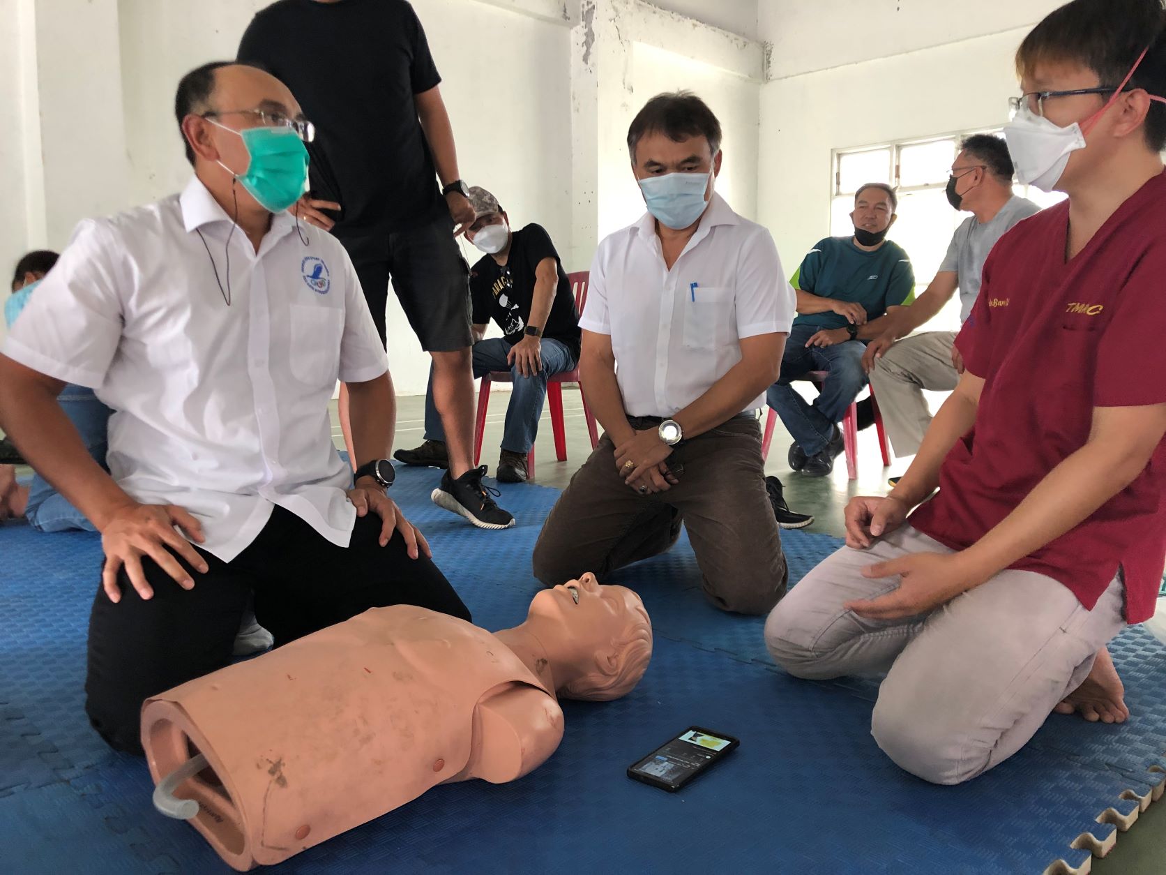 Pelatihan P3K model hybrid, maksudnya adalah pelatihan P3K yang menggabungkan antara konsep ONLINE (penyampaian materi teori P3K melalui aplikasi Zoom Meeting), dan juga konsep OFFLINE (praktek yang dilakukan secara langsung atas materi yang sudah disampaikan sebelumnya). Penyampaian materi secara online dilaksanakan selama 4 hari, dan praktek selama 2 hari.